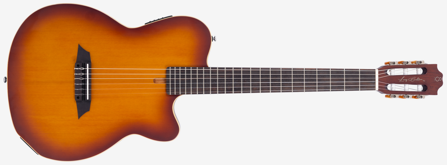 它与 G5A 共享理念,但专注于呈现古典吉他而非原声吉他的音色。琴颈宽度恰好适合古典吉他,并配有尼龙弦,能够在现场演奏中完美重现古典吉他的音色,避免回授,带来精致流畅的音色。