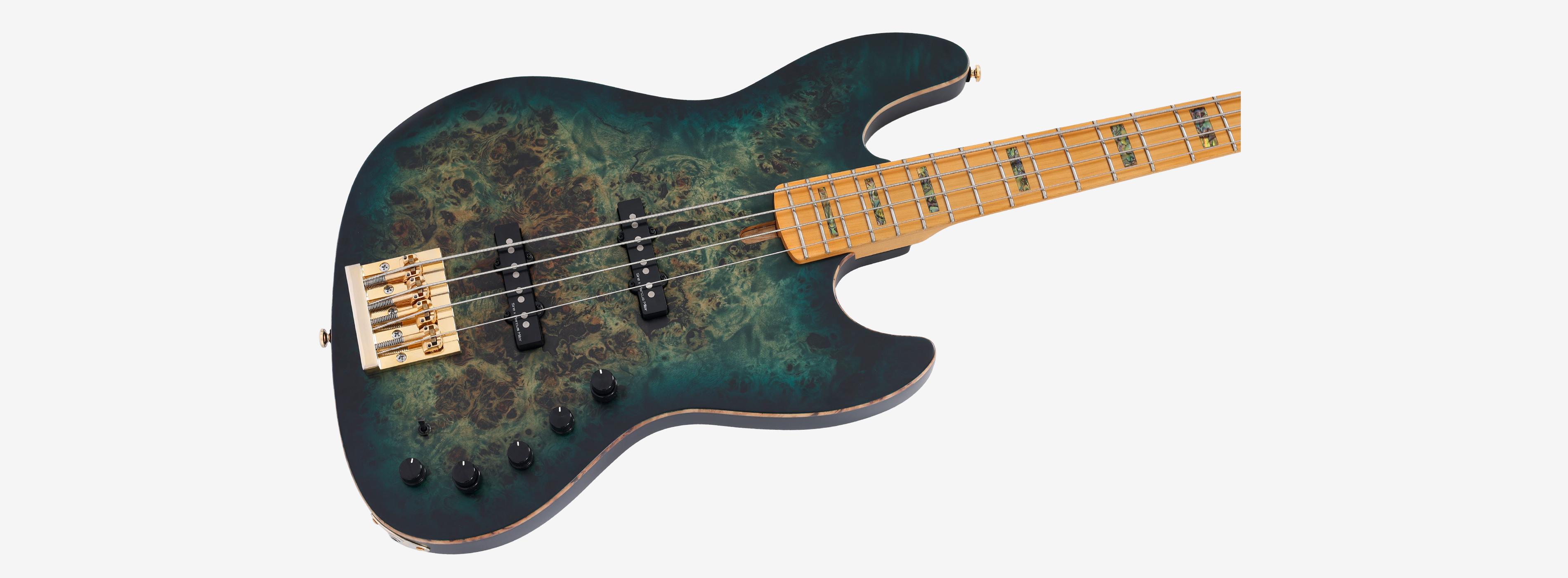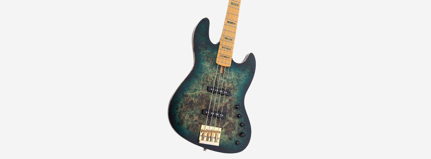 它是一种新型 J 型贝斯琴身,采用沼泽梣木和坚固的白杨木瘤木制成,可产生更具共鸣和平衡的音调,并具有良好的延音效果。